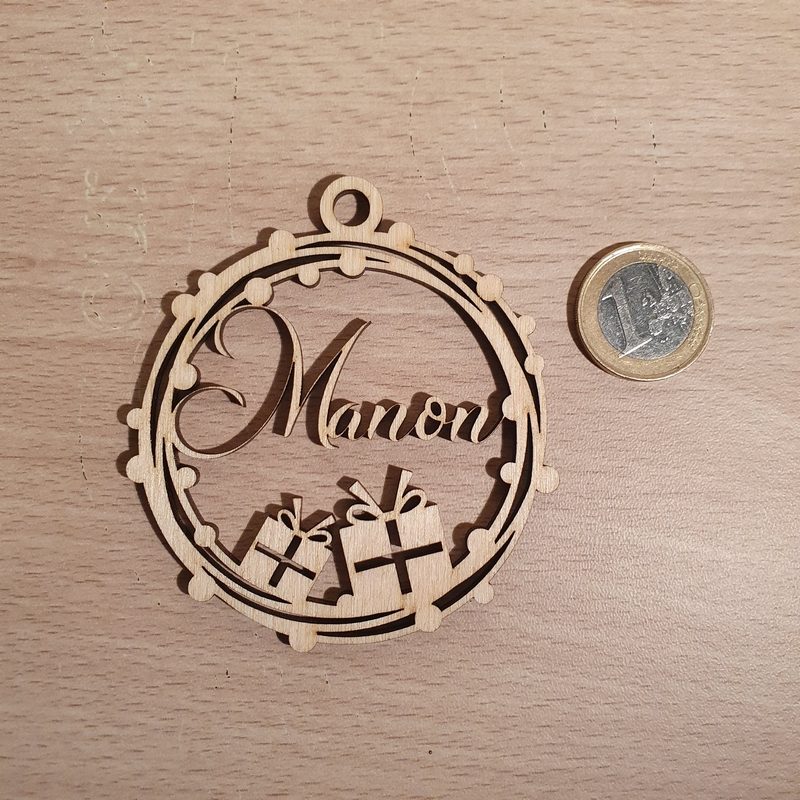Personnalisez votre décoration de Noël avec cet arbre en bois et sa boule personnalisée avec le prénom de votre choix.