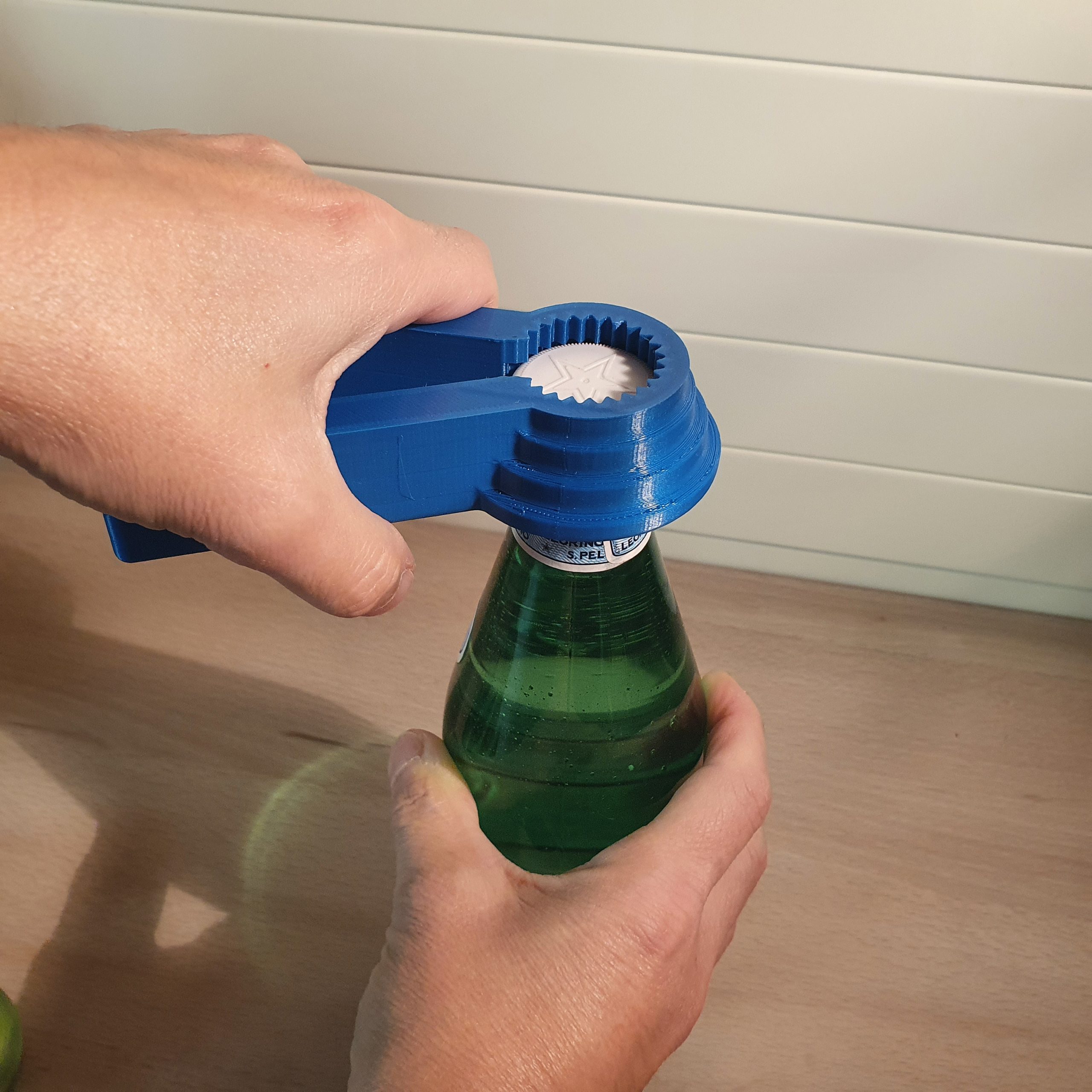 Pince ouvre bouteille multi-diamètre ergonomique.